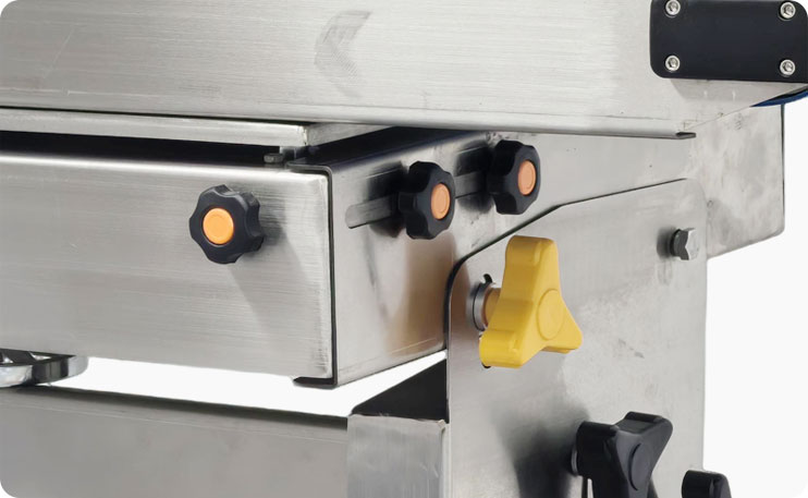 传送台的位置可以前后上下调节,也可以根据产品尺寸进行调节。