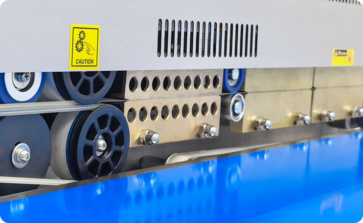 专为高端封口机设计,升级配备大风量风扇。热熔区压合后的袋口纹理迅速冷却定型。